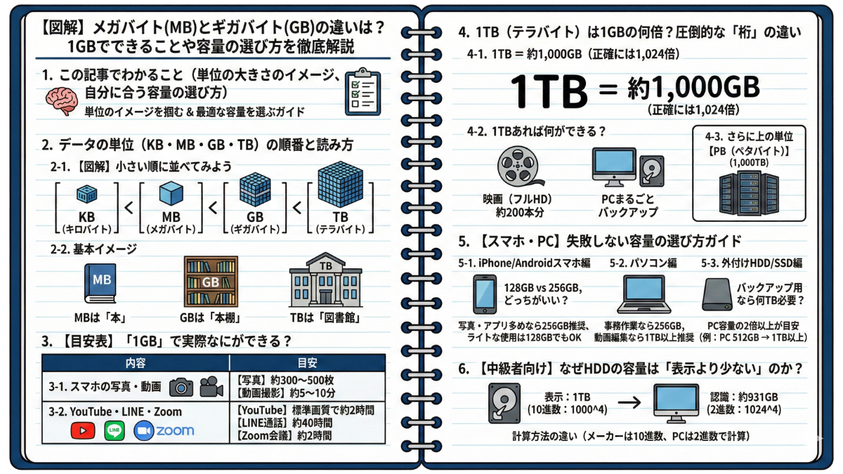 【図解】メガバイト(MB)とギガバイト(GB)の違いは?1GBでできることや容量の選び方を徹底解説