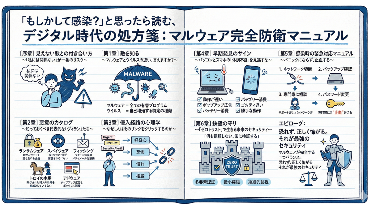 「もしかして感染?」と思ったら読む、デジタル時代の処方箋:マルウェア完全防衛マニュアル 2026.01.26 セキュリティ IT-Notebooks.com IT-Notebooks.com 【完全版】プロンプトエンジニアリングの教科書:AIの可能性を最大化する「対話」の技術 2026.01.06 AI IT-Notebooks.com IT-Notebooks.com 【2026年最新】楽天経済圏の始め方とおすすめの順番!改悪があってもやるべき理由とは? 2025.12.29 楽天 IT-Notebooks.com IT-Notebooks.com 【初心者向け】ブロックチェーンとは?仕組みやメリット・活用事例をわかりやすく解説 2025.12.20 IT IT-Notebooks.com IT-Notebooks.com 【図解】メガバイト(MB)とギガバイト(GB)の違いは?1GBでできることや容量の選び方を徹底解説 2025.12.14 PC、スマートフォン IT-Notebooks.com IT-Notebooks.com VPNとは?仕組みからメリットまで「図解」で解説|セキュリティと便利さの両立ガイド 2025.12.06 VPN IT-Notebooks.com IT-Notebooks.com