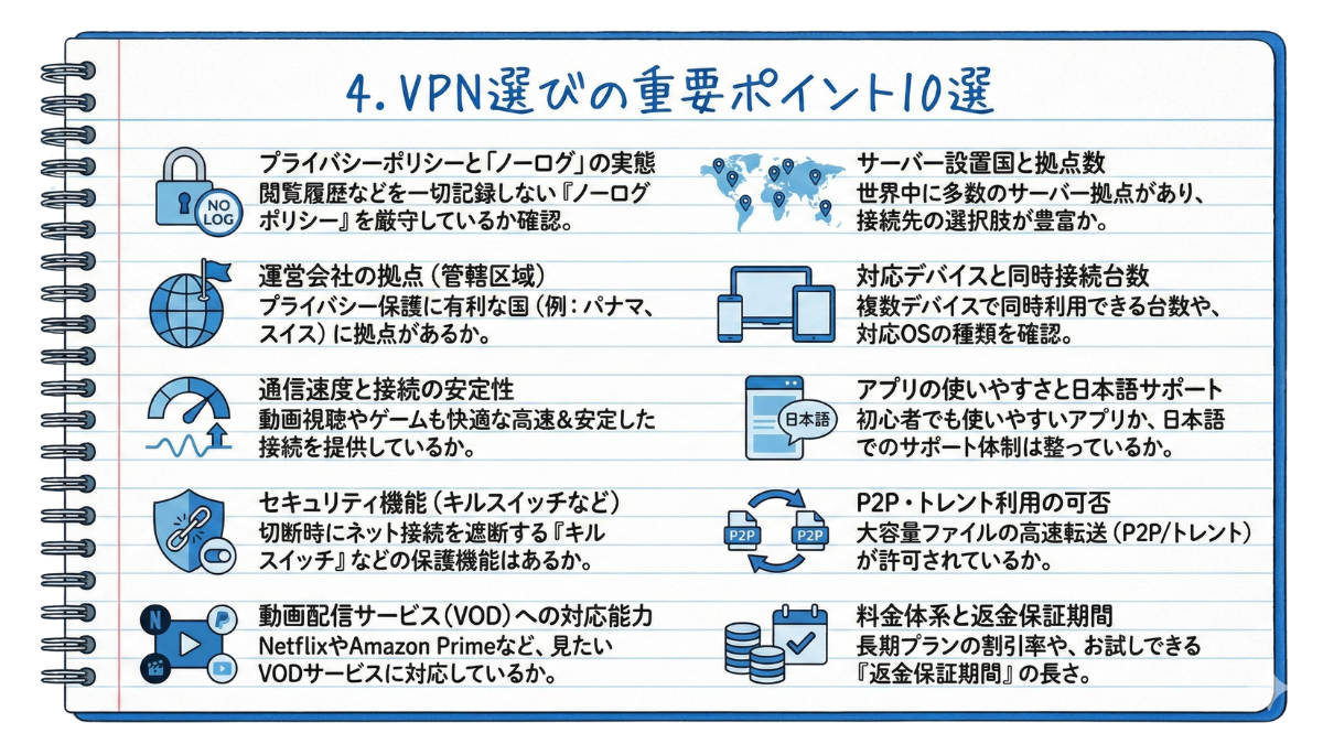 VPNの利用を検討する際、多くの人が抱く疑問や不安をまとめました。セキュリティから使い勝手まで、知っておくべきポイントを10個厳選して解説します。