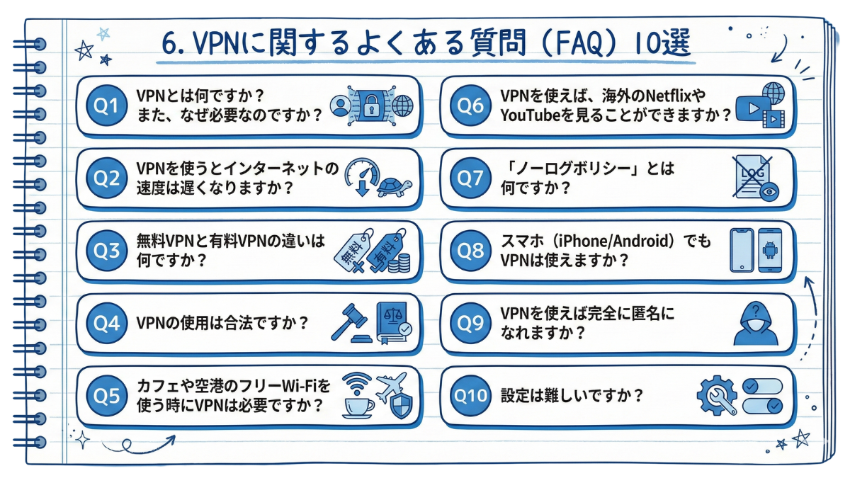 6. VPNに関するよくある質問(FAQ)10選