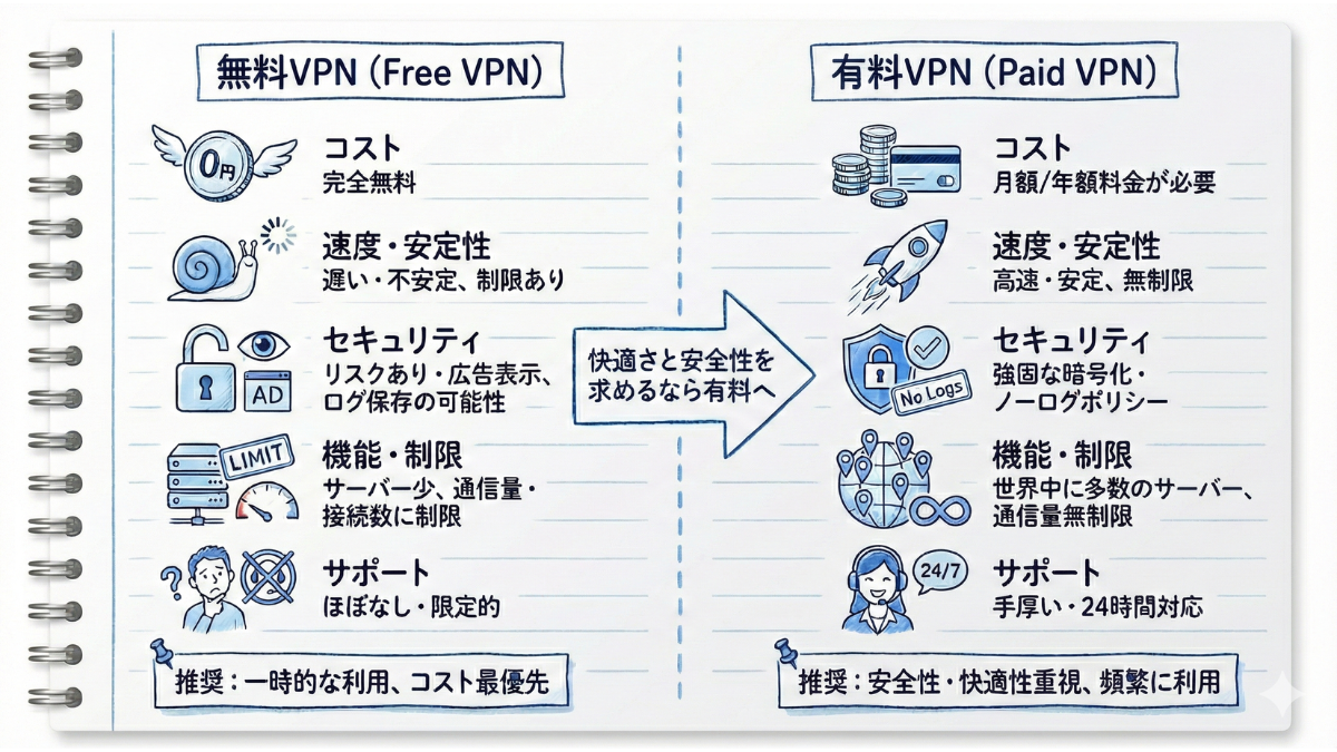 - Q3. 無料VPNと有料VPNの違いは何ですか?