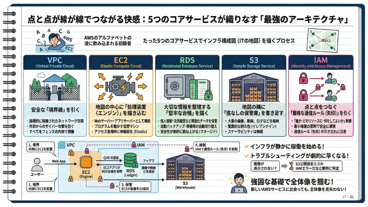 AWSを学ぶ本当の意義は、コマンドを叩けるようになることではありません。ITの力を使って、「ビジネスを勝たせるための強靭な構造」を描けるようになることなのです。