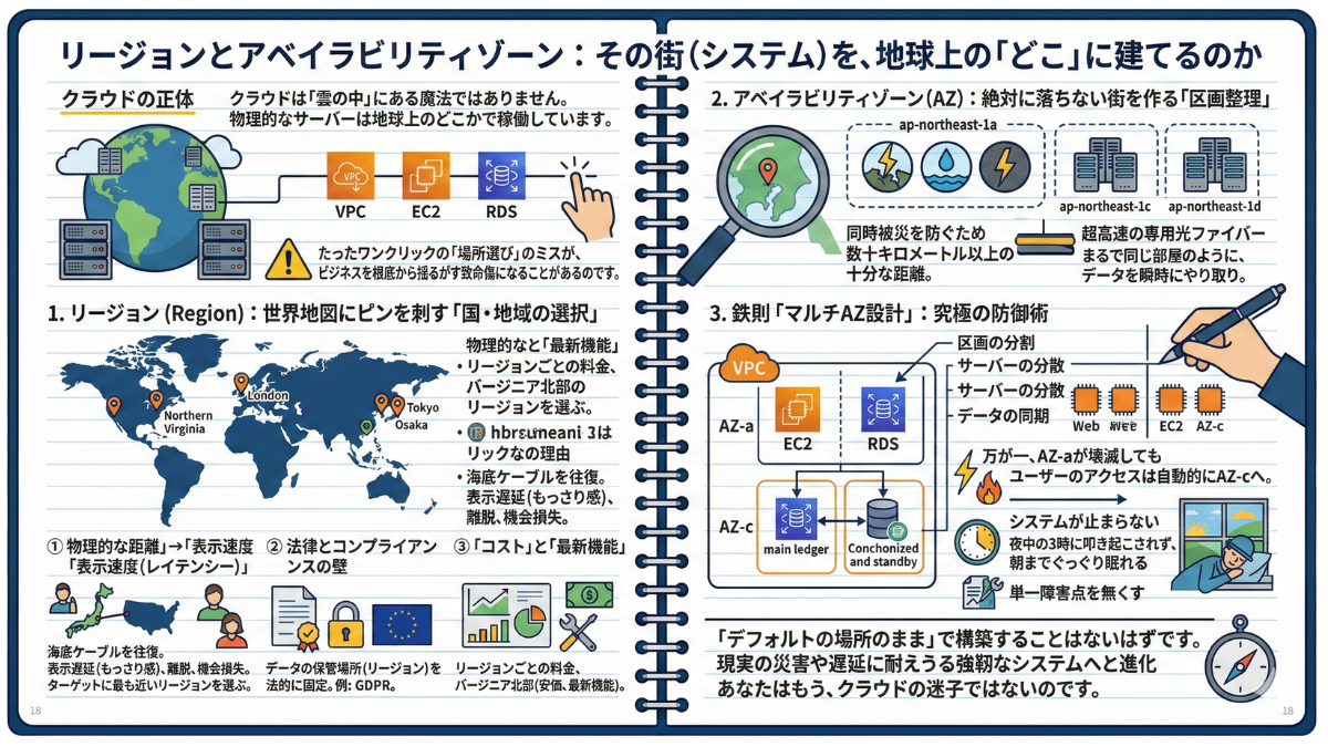 第3章で、私たちは複数のデータセンターにサーバーを分散させる「Multi-AZ(マルチAZ)」という技術を学びました。技術的にはこれを「冗長化」と呼びますが、ビジネスの視点から見れば、これは「高額な保険」です。